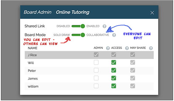 Unlimited access to whiteboards